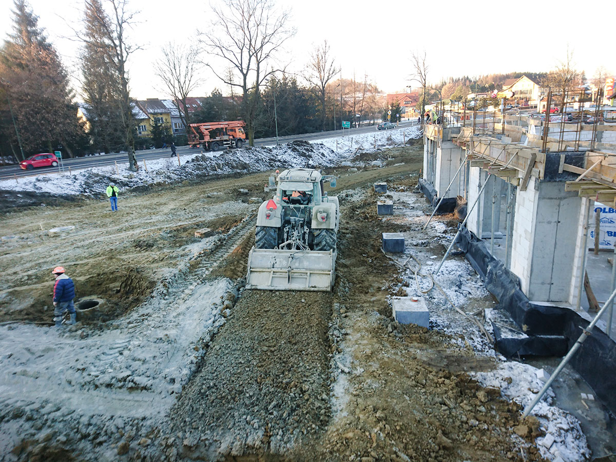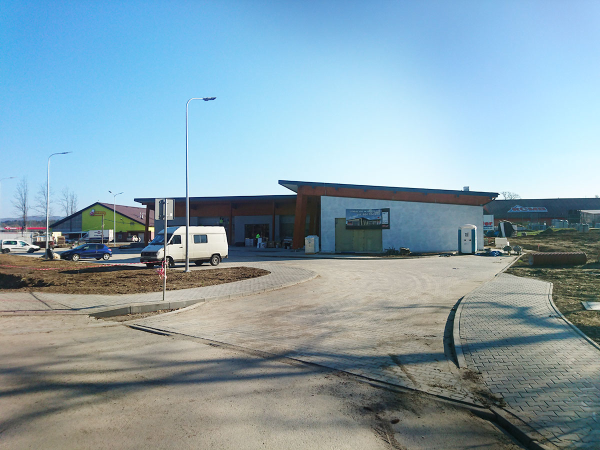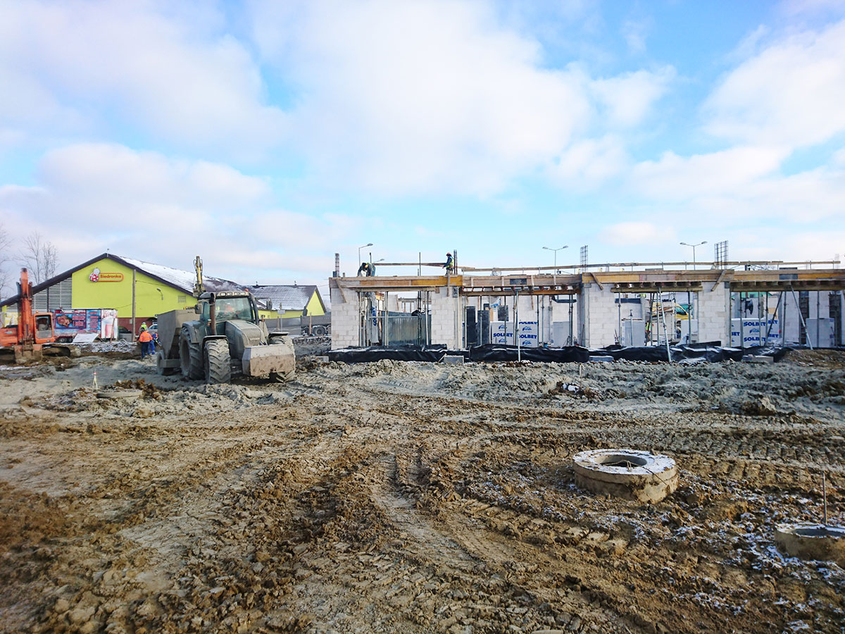 Przedmiotem inwestycji była budowa budynku handlowo - usługowego wraz z instalacjami wewnętrznymi, infrastrukturą techniczną oraz zagospodarowaniem terenu w Lesku.