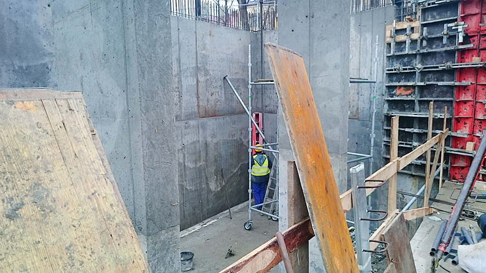- Ściany fundamentowe kondygnacji garażu